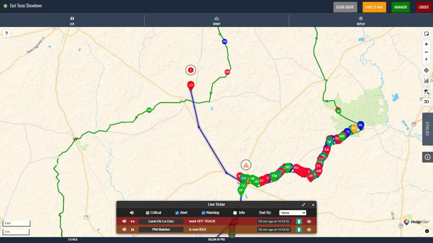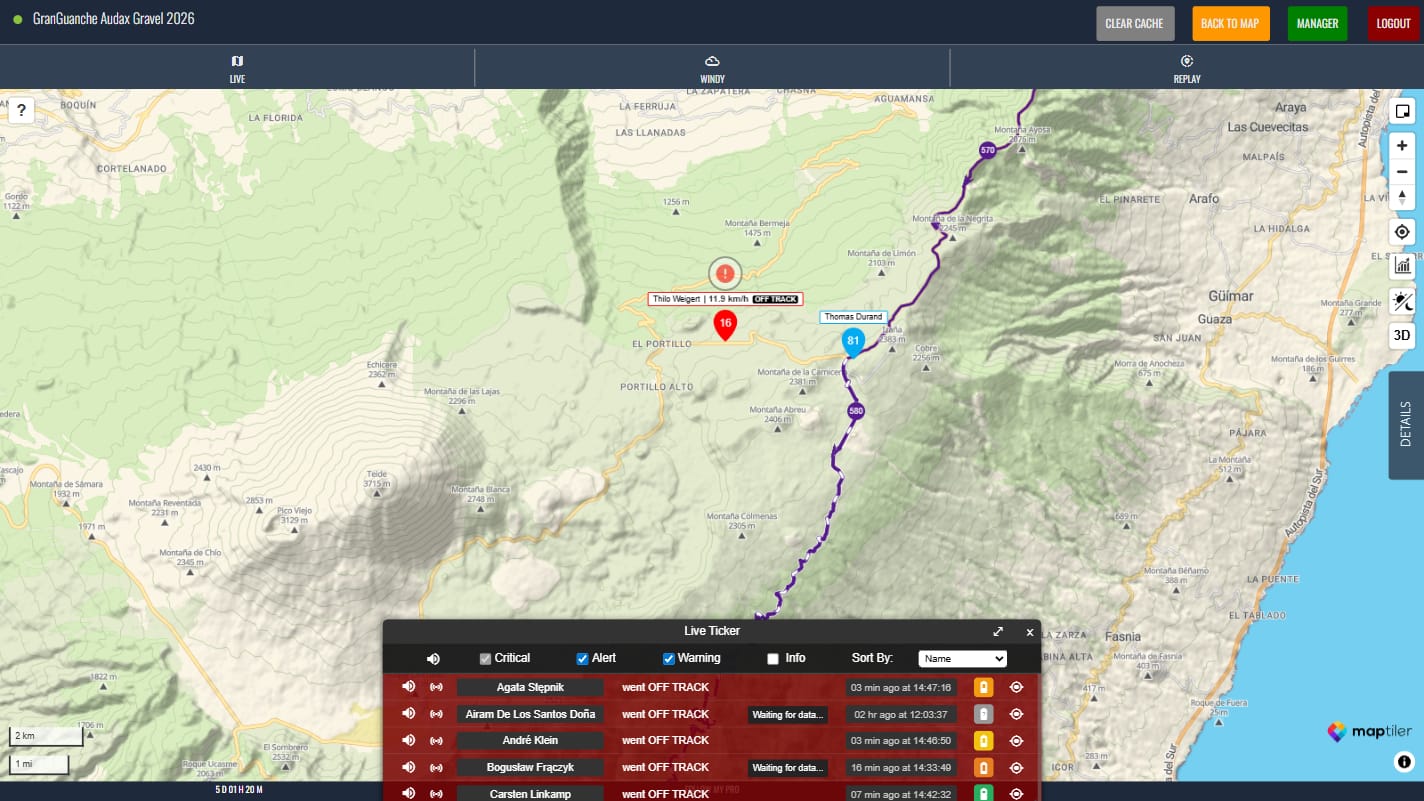 Whether it’s a rider who has stopped unexpectedly in a remote location, someone who has gone off route or a tracker that has lost signal, FMP Lite surfaces those situations clearly and immediately. This kind of automated monitoring can be the difference between catching a problem early and missing it entirely. It provides a structured, prioritised view that keeps the most critical alerts front and centre.